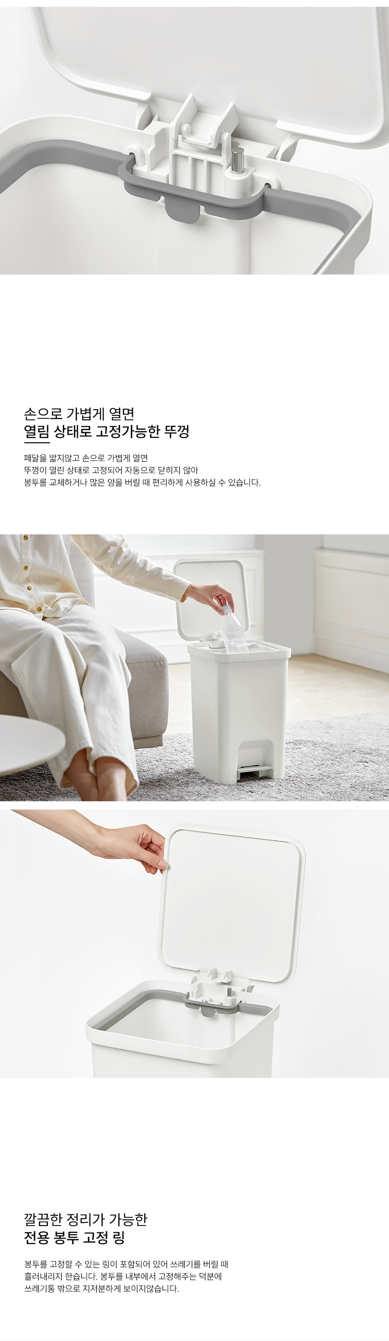 기존 페달형 휴지통은 20리터 종량제봉투만 사용이 가능해서 아쉬웠는데